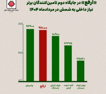 «ارفع» در جایگاه دوم تامینکنندگان برتر نیاز داخلی به شمش در مرداد ماه ۱۴۰۴