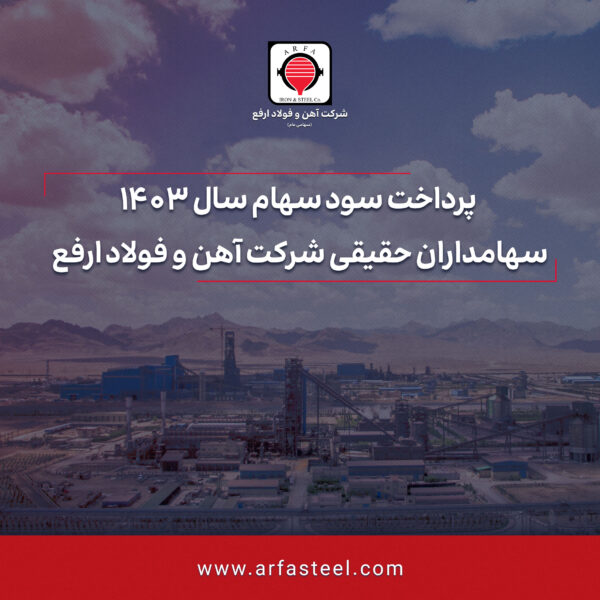 پرداخت سود سهام سال 1403 سهامداران حقیقی شرکت آهن و فولاد ارفع