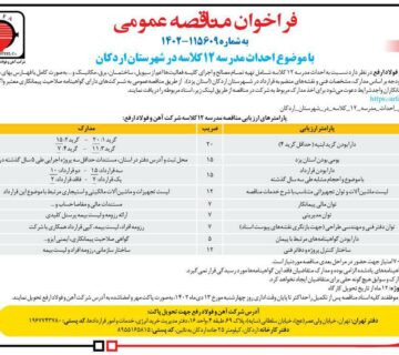 مناقصه عمومی احداث مدرسه 12 کلاسه در شهرستان اردکانAdmin۱۴۰۲-۰۹-۳۰به منظور دریافت «اسناد مناقصه عمومی احداث مدرسه 12 کلاسه در شهرستان اردکان» بر روی لینک زیر کلیک کنید. ... ادامه مطلب
