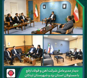 دیدار مدیرعامل شرکت آهن و فولاد ارفع با مسئولان استان یزد و شهرستان اردکانروابط عمومی۱۴۰۴/۰۱/۰۷مهندس امین صفری، مدیرعامل شرکت آهن و فولاد ارفع، با استاندار یزد، نماینده مردم اردکان در مجلس شورای اسلامی و فرماندار این ... ادامه مطلب