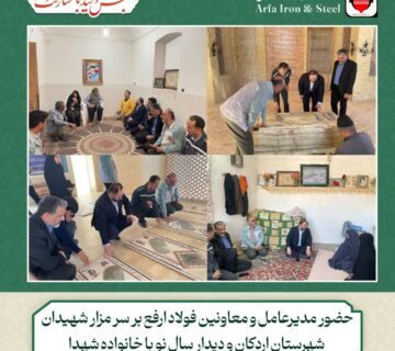 دیدار نوروزی مدیرعامل و معاونین فولاد ارفع با خانواده شهدا و حضور بر سر مزار شهدای اردکانروابط عمومی۱۴۰۳/۰۱/۰۲مدیرعامل و معاونین شرکت آهن و فولاد ارفع در ابتدای سال جدید با حضور در مزار شهدای اردکان و همچنین دیدار با ... ادامه مطلب