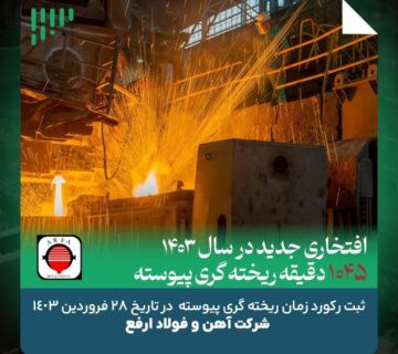 ثبت رکورد زمانی، افتخاری دیگر در فولاد ارفع در سال ۱۴۰۳روابط عمومی۱۴۰۳/۰۱/۳۰انجام ریخته گری پیوسته در مدت زمان ۱۰۴۵ دقیقه در ۲۸ فروردینبه گزارش مهندس علی وکیلی مدیر فولادسازی شرکت آهن و فولاد ... ادامه مطلب