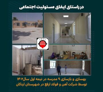 شرکت آهن و فولاد ارفع؛ پیشرو در بازسازی و بهسازی مدارسAdmin۱۴۰۲-۰۷-۱۸شرکت آهن و فولاد ارفع، به عنوان یکی از پیشگامان صنعت فولاد در ایران، در دو سال اخیر اقدامات چشمگیری در زمینه ... ادامه مطلب