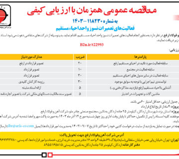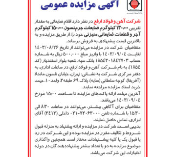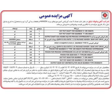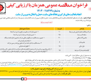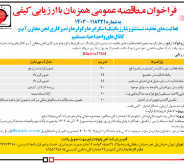 مناقصه تخلیه، شستشو و شارژ پکینگ اسکرابرها و کولرها و تمیزکاري لجن مخازن آب و کانالهاي واحد احیاء مستقیم شرکت آهن و فولاد ارفعAdmin H.H۱۴۰۳-۰۹-۰۵