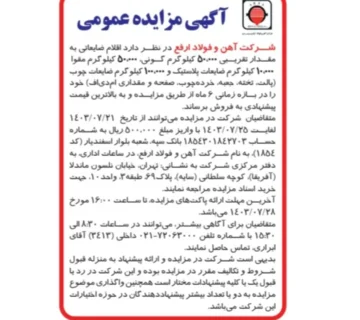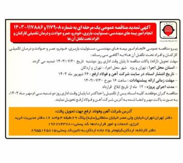 دکتر علیرضا محمدی، معاون اکتشاف و امور معادن شرکت آهن و فولاد ارفع، اعلام کرد: این شرکت با موفقیت در مزایده بسته ... ادامه مطلب