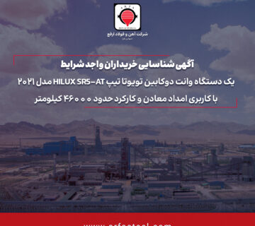 آگهی شناسایی خریداران واجد شرایط یک دستگاه وانت دوکابین تویوتا تیپ HILUX SR5-AT مدل 2021 با کاربری امداد معادن و کارکرد حدود 46000 کیلومترروابط عمومی۱۴۰۴/۰۶/۲۲